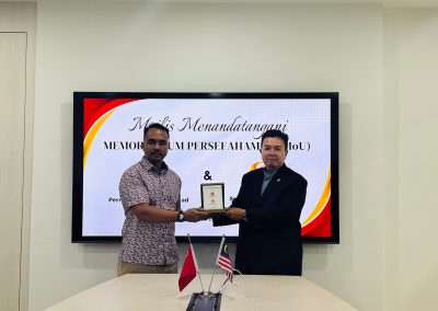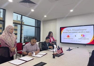 Sesi MoU ini dihadiri oleh Ketua Pegawai Eksekutif, Encik Mohd Azad Bin Jasmi dan disaksikan oleh Pengurus Pembangunan Perniagaan Puan Muzzaini binti Abd. Rahman.
